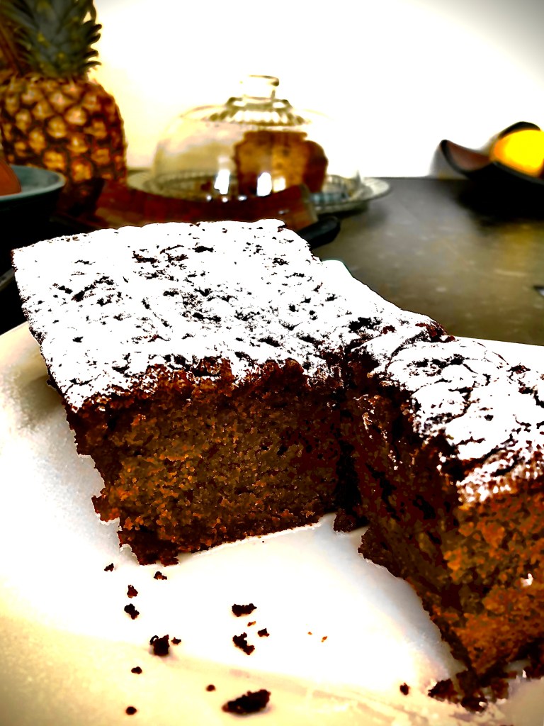 Now, traditionally you skewer test a cake and if it comes out clean its cooked! With this, I like the middle to still be a little gooey. A little bit more ‘done’ than a brownie, but less done than a sponge cake!